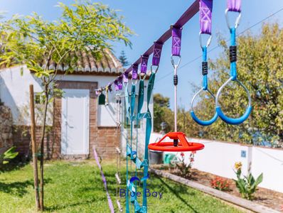 The secluded garden with a herbal garden and an Obstacle Course Kit for Kids is gated to avoid free access to the plunge pool.