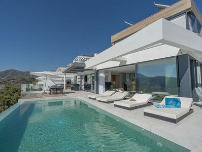 ULTRA-MODERN VILLA MINIMALIST AND TECHY WHILE COMFORTABLE AND INVITING, Into The Blue, with its head-to-toe sliding glass doors, effortlessly lets in the blue sky and stunning Mediterranean views in a house as minimalist as it is comfortable. Located on Spain's quiet but exclusive Costa Tropical, this is a house of great luxury; 5 bedrooms and open-plan living, stunning terraces with heated pool*.